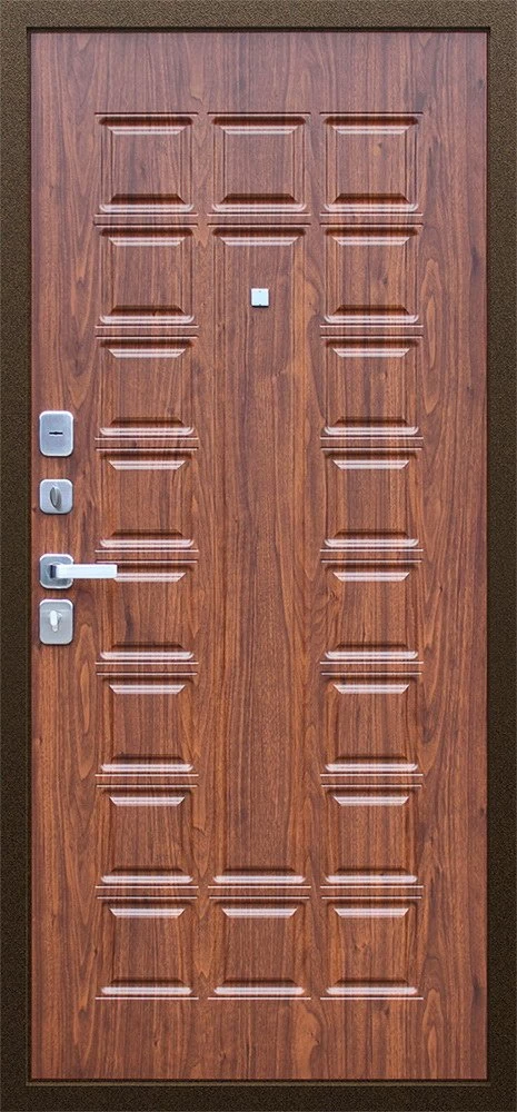 Надежная входная Дверь Спартак Орех темный премиум класса по цене 33 887 руб. Большая толщина стали защитит от проникновения в ваш дом, квартиру или коттедж. Используется очень качественная фурнитура: замки, цилиндры, ручки, защелки. Покрытие и отделка двери изготовлено под внимательным контролем производителя. Дверь имеет долгий срок службы и гарантию.